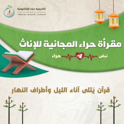 مقرأة مجانية مخصصة للنساء والفتيات، تهدف إلى غرس عادة تلاوة القرآن الكريم يوميًا بتشكيل سليم وتجويد متقن، بإشراف مقرئات ذوات كفاءة عالية وإدارة أكاديمية حراء الإلكترونية.